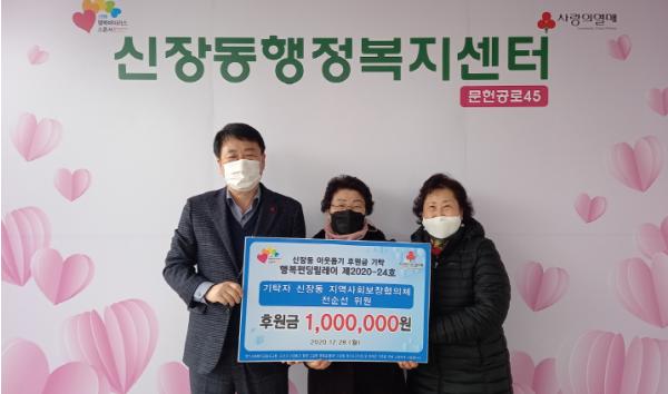 신장동행정복지센터는 지난 28일 지역사회보장협의체 전순선위원이 관내 저소득 취약계층의 코로나19 극복과 지역사회 복지발전을 위한 이웃돕기 후원금 100만원을 기탁했다고 밝혔다.
