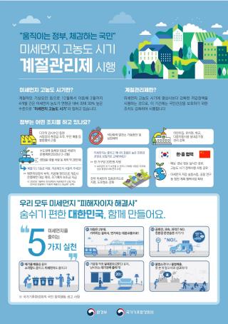 미세먼지 계절관리제는 시민건강을 보호하기 위해 평상시보다 강화된 저감 대책을 시행하여, 선제적으로 미세먼지의 발생을 줄이는 제도이다.