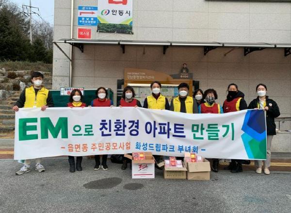 또한, 화성파크드림아파트 부녀회 및 주민들(36명 참여)과 함께 안동시지역사회보장협의체 강남동주민 공모사업에 당선되어「코로나 예방, 환경지킴이 가족과 함께하는 EM (유용미생물군 : Effective Microorganisms) 천연 비누 만들기」사업을 2달간(2020.11.~12.) 실시했다. 주민들과 함께 보고 배우고 체험하는 시간을 통해, 아파트 주민 599세대와 취약계층 30세대에 비대면으로 천연비누를 전달하며 이웃사랑을 실천하고 위생 관리의 중요성도 공유했다.