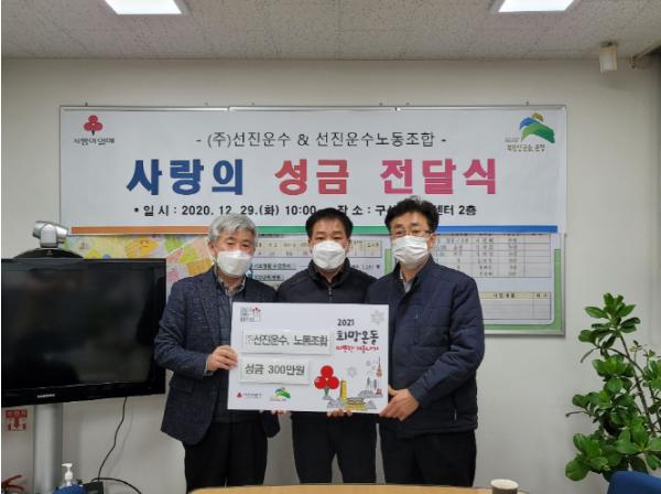 은평구 구산동주민센터는 지난 12월 29일 동 주민센터에서 ㈜선진운수(대표: 민배홍)와 선진운수 노동조합과 2021. 희망온돌 따뜻한 겨울나기 성금 전달식을 가졌다.