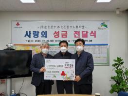 이번 행사는 평소 반찬배달 행사 등 봉사활동을 꾸준히 해온 ㈜선진운수와 800여명의 노동조합원들이 한마음이 되어 추운 겨울철 코로나19로 인해 어려움을 겪고 있는 주민들을 위해 성금 300만원의 큰 금액을 선뜻 기부하였고, 이 성금은 서울시사회복지공동모금회를 거쳐 관내 어렵고 소외된 이웃에게 전달할 예정이다.