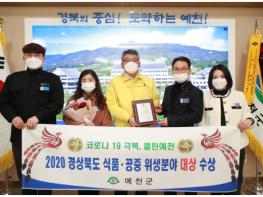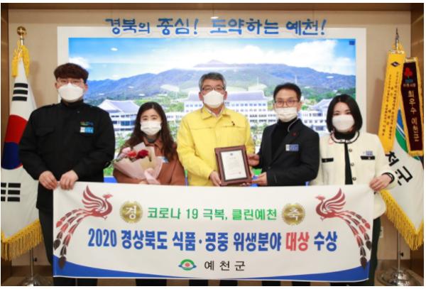 예천군이 경상북도 주관 2020년 식품?공중위생관리 사업 평가에서 대상을 수상했다.