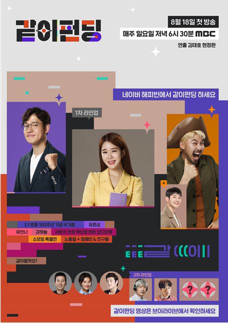 MBC ‘같이 펀딩’은 혼자서는 실현하기 어려운 다양한 분야의 '가치' 있는 아이디어를 방송을 통해 시청자들이 확인하고, 크라우드 펀딩을 통해 '같이' 실현해보는 예능이다.