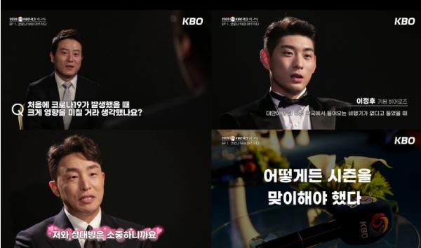 이번 영상 시리즈는 박민우, 박석민, 양의지(NC), 강백호, 황재균(KT), 김현수(LG), 김하성, 이정후(키움), 최형우(KIA), 손아섭(롯데) 등 KBO 리그를 대표하는 스타 선수들과의 심층 인터뷰를 통해 마음 속 깊은 이야기를 담아내고, 코로나19로 다사다난했던 2020 시즌의 순간들을 회고하는 콘텐츠로 구성됐다.