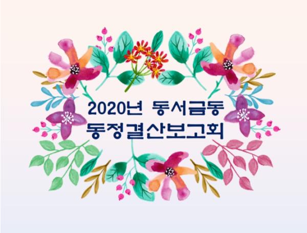 보고회는 연말 모든 행사, 회의가 취소된 가운데 동서금동 밴드를 통하여 주민들과 올 한해 있었던 이야기를 공유하며 올 한해를 마무리 하고, 코로나19 예방 및 확산 방지를 위하여 비대면으로 진행하였다.