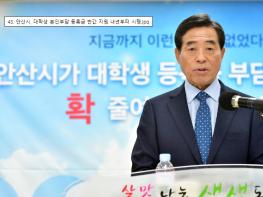 한편 시는 안산시에 거주하는 대학생들의 교육비 부담을 해소하고, 역량 있는 인재 육성을 위한 목적으로 국가, 대학교 및 직장에서 받은 학자금 지원액을 제외한 본인이 부담하는 등록금의 절반을 지원하는 사업을 추진하기로 올 4월 발표하고 추진해 왔다.