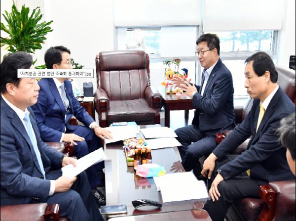 이날 간담회에서는 광역정부와 지방정부간 보조금 심의 제도를 규정하는 법안을 입법해 달라는 요청과 함께 2단계 재정분권이 기초정부 중심으로 이뤄져야 한다는 의견을 전달했다.