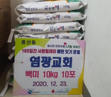 의정부시 흥선동 행정복지센터는 12월 23일 염광교회가 쌀(10kg) 10포를 기탁했다고 밝혔다.