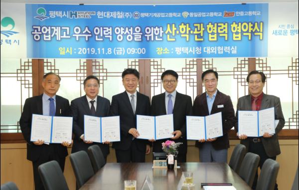 이날 협약식에는 정장선 평택시장을 비롯 유의동 국회의원, 현대제철 안동일 대표이사와 평택기계공업고등학교 김광회 교장, 동일공업고등학교 정기학 교장, 안중고등학교 김진현 교장 등이 참석해 협약을 맺고 긴밀한 협력체계를 구축하기로 했다.
