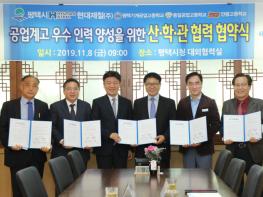 평택시(시장 정장선)가 8일 시청 대외협력실에서 지역의 우수인력 양성을 위한 산.학.관 협력 협약식을 개최했다고 밝혔다.