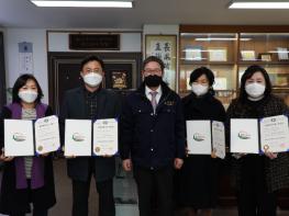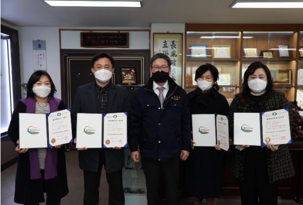 충북 영동군의 4개 어린이집이 열린어린이집 심사에서 최종 선정돼 최근 군수 집무실에서 선정서 수여식을 가졌다.