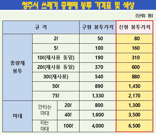 한편, 청주시는 2003년 이후 종량제봉투 가격을 동결해 왔으나, 환경부 권고 주민부담률, 인근 지자체의 종량제봉투 가격 등을 고려해 지난 11월 30일 종량제봉투 가격 인상을 고시한 바 있다.