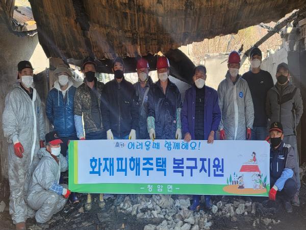 하동군 청암면사무소 직원과 주민들이 최근 화재로 소실된 주택 복구를 위한 일손 지원에 나섰다.