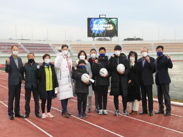 행사 마지막 순서로는 참석자들이 고성군 축구 유소년선수들에게 축구공에 응원 문구를 남기며 운동장에서 멋진 모습을 보여줄 것을 기대하며 선수들을 격려하는 시간을 가졌다.