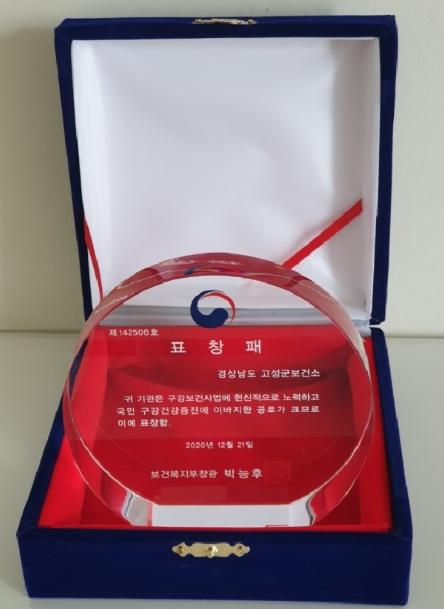 고성군은 12월 24일 오후 4시 고성군청 군수실에서 2020년 보육교직원 유공자에게 표창패를 전달했다.