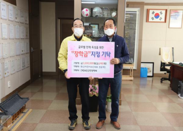 화신이앤지(주)는 30일 보은군청을 방문해 글로벌 인재육성에 써달라며 장학금 300만원을 보은군민장학회에 기탁했다.