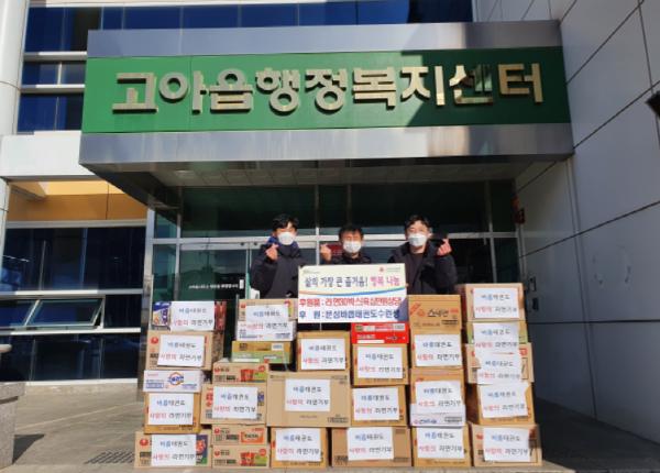 구미시 고아읍은 30일 문성바름태권도에서 관내 취약계층에게 전해달라며 라면 30박스(60만원 상당)을 기탁하였다.
