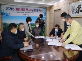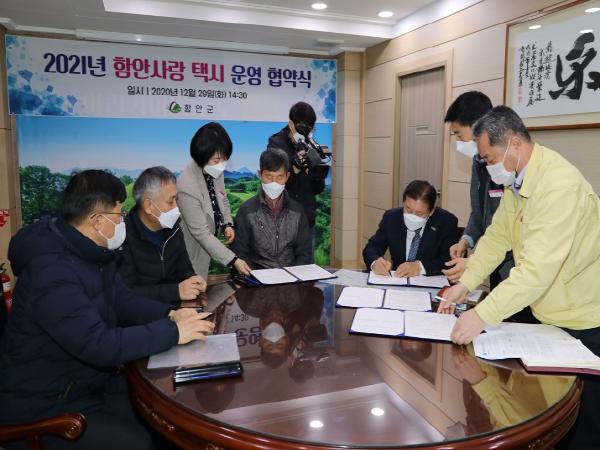 함안군은 지난 29일 군수실에서 조근제 함안군수와 3개 협약택시업체 대표자, 관계 공무원이 참석한 가운데 ?년 함안사랑택시 운영 협약’을 체결했다.