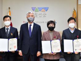 최승준 정선군수는 이날 서건희) 문화관광과장에게 우수공무원 대통령 표창을 조형식 계약관리담당과 전미숙 기업지원담당에게 모범공무원 국무총리 표창을 전수하고 격려했다.