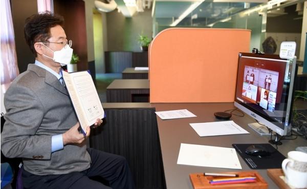 이날 협약식은 사회적 거리두기 단계가 격상되고, 코로나19 확진자가 대폭 증가함에 따라 고용노동부장관, 여성가족부장관의 경우 대면 협 약, 자치단체장의 경우 화상 협약으로 동시에 진행됐다.