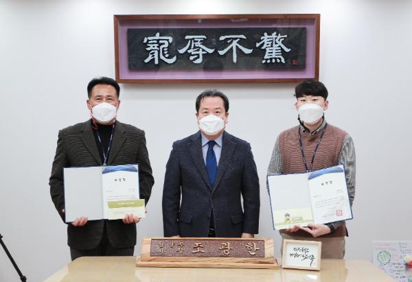 남양주시는 30일 시장 집무실에서 「2020년 4분기 친절왕」으로 선정된 허강원 주무관, 한택희 주무관에게 표창장을 전수하였다.