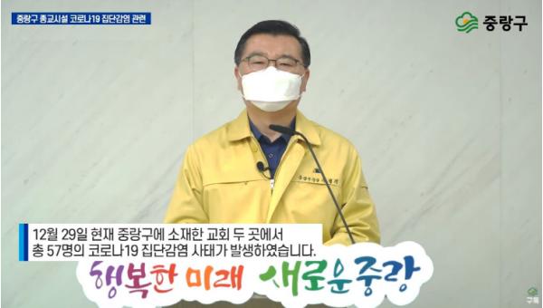 29일에는 관내 종교시설에서 집단감염이 발생하자 긴급 브리핑을 실시했다. 류경기 중랑구청장은 이날 브리핑에서 “집단감염의 원인이 방역수칙 위반으로 밝혀졌다며, 해당 시설에 대한 과태료를 부과하고 형사고발 하겠다.”고 밝혔다. 또한 ”앞으로 방역수칙 미준수로 중랑구민의 생명과 안전을 위협하는 시설은 관계 법령에 따라 강력 조치하겠다.“며 구민의 안전을 지키려는 중랑구의 강한 의지를 표명했다. 구는 긴급브리핑을 홈페이지와 SNS 등에 게시해 많은 구민들이 볼 수 있도록 했다.