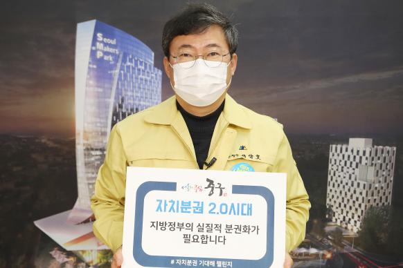 대통령 소속 자치분권위원회에서 시작한 '#자치분권 기대해' 챌린지는 지난 9일 지방자치법 전부개정 및 자치경찰 관련법 등이 국회를 통과하여 자치분권의 미래를 준비하는 각오와 계획 등 핵심 메시지를 전달하고자 하는 취지를 담고 있다. 지목받은 참여자는 자치분권 2.0시대에 대한 자유로운 의견을 담아 촬영한 사진을 SNS에 올리고 다음 참여자를 지목하는 방식으로 진행된다.