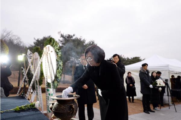이날 참배는 코로나19 상황을 고려해 애초 계획한 참석 인원을 269명에서 16명으로 줄여 행사를 대폭 축소했다.