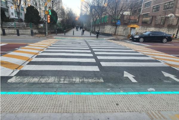보행신호등 주변 보도에는 보행자에게 ‘무단 횡단 금지’를 알리는 ‘사인 블록’(Sign-block)도 설치했다.