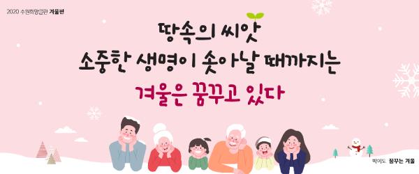 현재 수원희망글판에는 겨울편 문안 ‘땅속의 씨앗 소중한 생명이 솟아날 때까지는 겨울은 꿈꾸고 있다’가 게시돼 있다. 박이도 시인의 시 ‘꿈꾸는 겨울’에서 발췌한 문안이다.