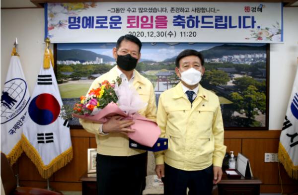 김해시 김환선 안전도시과장이 퇴임하는 날까지 코로나19 방역현장을 진두지휘하는 모습을 보여 후배 공무원들에게 좋은 본보기가 됐다.