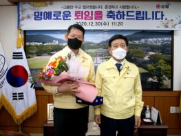 김 과장은 30일 평소와 다름없이 출근해 오전 시장실에서 마련된 퇴임식 이후에도 노란색 민방위 점퍼 차림으로 32년 공직생활의 마지막 날을 성실하게 마무리했다.