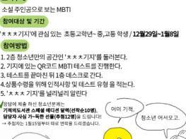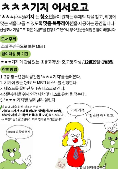 또한 신설 코너 기념으로 ‘ㅊㅊㅊ기지’에서 QR코드를 찍고 비대면 MBTI 검사지를 제출하면 소정의 상품을 주는 작은 이벤트도 12월29일부터 1월 8일까지 진행하고 있다.