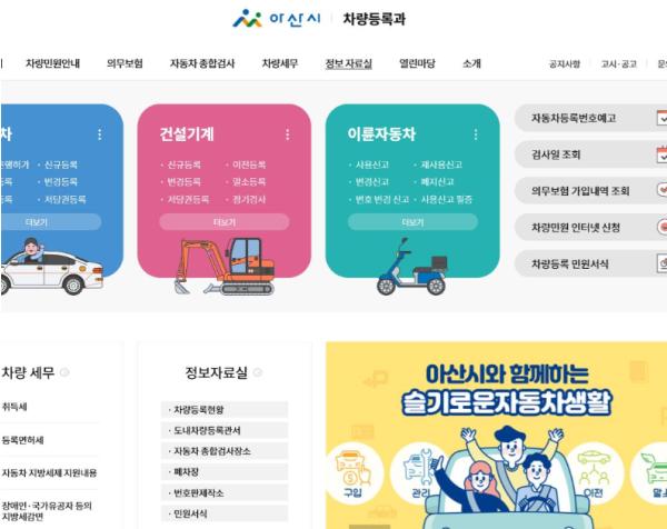 아산시가 2021년 1월 1일부터 차량등록 홈페이지 운영을 시작한다.