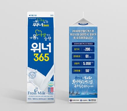 대표 유제품인 ‘위너365’에 홍보 디자인을 입혀 고객들에게 2030부산월드엑스포 유치 도전을 알리고 유치를 기원할 예정이다.
