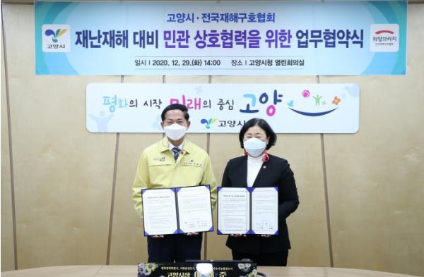 고양시는 지난 29일 시청 열린회의실에서 희망브리지 전국재해구호협회와 재난재해 대비 민관 상호협력을 위한 업무협약을 체결했다. 이는 각종 재난재해로부터 시민 피해를 예방하고 피해의 신속한 복구 및 지원을 추진하기 위한 것이다.
