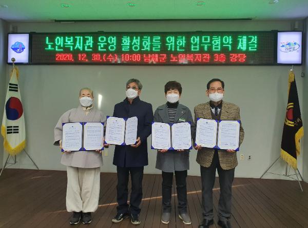 남해군노인복지관, 남해군컴퓨터봉사회, 화방남해노인통합지원센터, 남해군시각장애인주간보호센터 등 4개 기관이 긴밀한 교류와 협력으로 노인복지를 증진하고 상생발전을 위해 적극 협조 하자는데 뜻을 모았다.