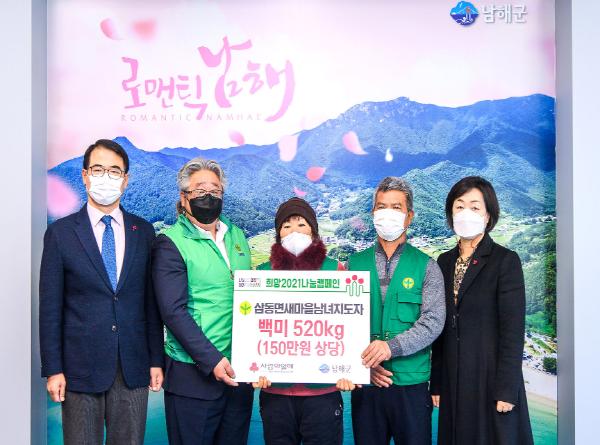 남해군 새마을지도자 삼동면협의회(회장 한수찬)·삼동면새마을부녀회(회장 장덕례)는 30일 관내 어려운 이웃에게 전달해 달라며 10㎏ 백미 52포대(150만원 상당)를 남해군에 기탁했다.