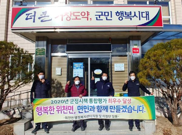 거창군 위천면(면장 최주현)이 2020년도 군정시책 통합평가 읍·면 분야 1위, 전화친절도 평가 군 전체 1위, 읍·면 환경 분야 평가 장려, 새마을운동 우수마을 수상으로 4관왕의 영예를 안게 됐다.