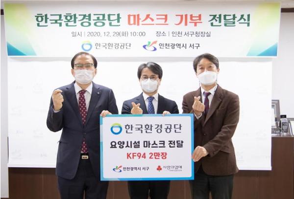 인천 서구는 지난 29일 한국환경공단이 서구에 KF94 마스크 2만 장을 기부했다고 밝혔다.