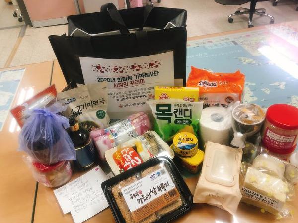 이번 활동은 봉사단 각 가정에서 강화섬쌀 누룽지, 소고기미역국, 라면 등 꾸러미를 제작해 연말연시 홀로 계시는 독거노인 34가구에 비대면으로 전달했다.