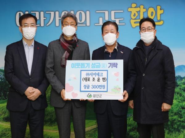 ㈜지이테크는 지난 30일 관내 소외계층을 위해 사용해달라며 이웃돕기 성금 300만 원을 기탁했다.