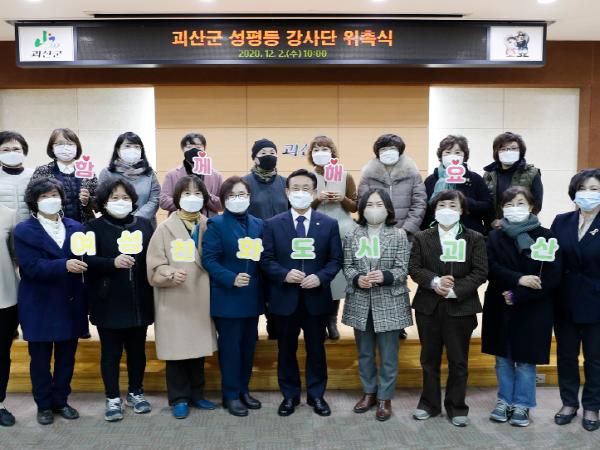 괴산군은 민선 7기 역점사업인 여성친화도시 지정을 위해 여성친화도시 조성 중장기계획연구용역, 조성위원회 및 군민참여단 구성을 시작으로, 성평등 강사단 구성, 군-의회-유관기관 업무협약체결 등의 노력을 이어왔다.