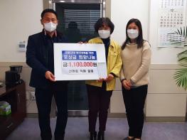 시흥시 신현동행정복지센터(동장 윤혜숙)가 올해 재정일자리사업 우수부서로 받은 포상금과 국민기초생활보장 적극발굴 사례공모전 우수팀 시상금(후원금품: 시루85만원, 현금25만원)을 어려운 이웃을 위한 후원금으로 기탁했다.