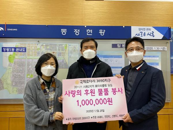 국제로터리3690지구 시흥2지역 대표(유해중)는 “코로나19로 인해 더욱 추운 겨울을 보내는 이웃들이 따뜻한 연말을 보내는데 조금이나마 도움이 되었으면 한다”고 전했다.