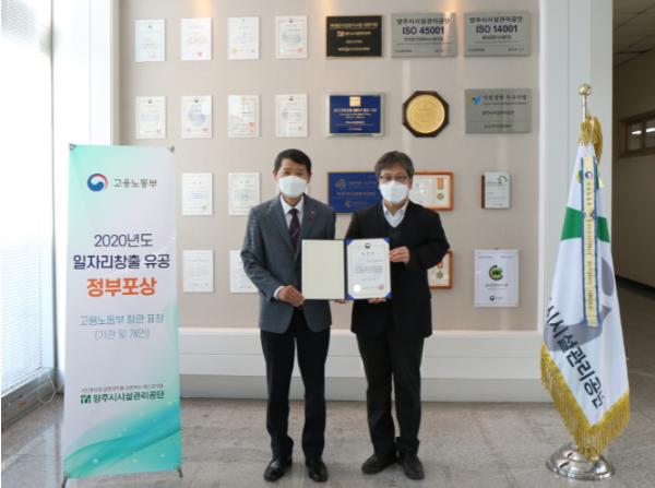 양주시시설관리공단은 고용노동부로부터 2020년도 일자리창출 유공 기관으로 선정되어 고용노동부 장관 표창을 수여받았다고 12월 30일 밝혔다.