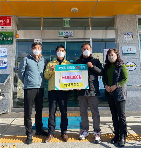 회화면 회화산악회(회장 구영도)는 12월 30일 회화면사무소를 방문하여 이웃돕기 성금 100만 원을 기탁했다.