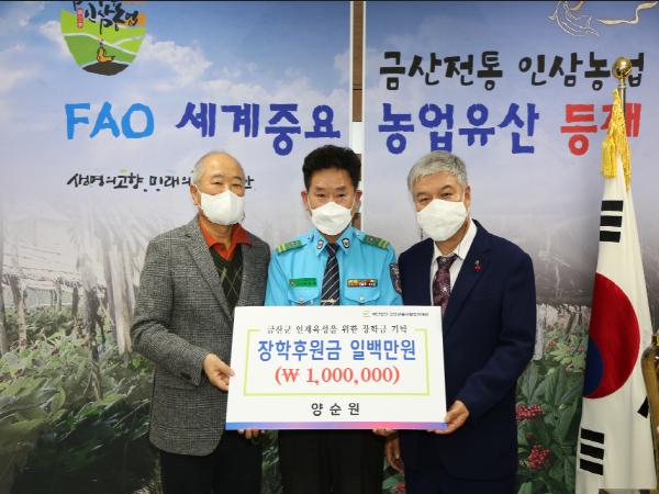 한편, 금산교육사랑장학재단은 2020년 3억6000만 원의 장학후원금 기탁 받았으며, 현재까지 160억 원의 장학금을 조성했다.