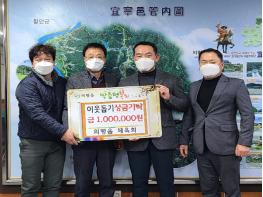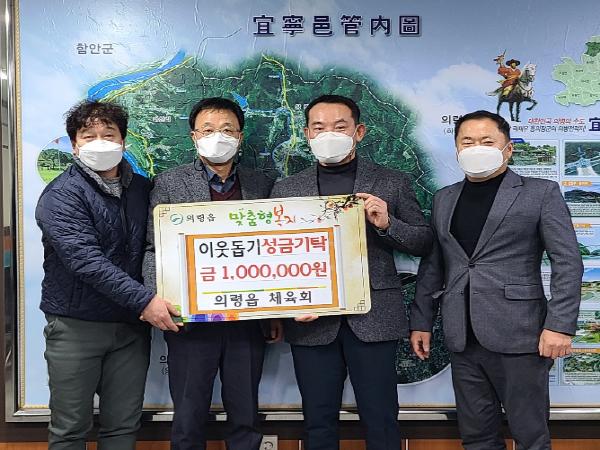 의령읍체육회는 지난 12월 30일 연말연시를 맞아 이웃돕기 성금 100만원을 의령읍에 기탁했다.