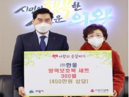 군포시에 소재한 ㈜한웅에서 지난 30일 코로나19 방역활동에 사용해달라며 KCs인증(산업안전보건인증)과 Halal인증을 획득하고 미국 FDA에도 등록된 일회용 전신보호복 세트 300벌(450만원 상당)을 의왕시에 기부했다.